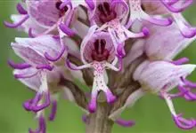 意大利红门兰,也称裸男兰、意大利男人兰,为兰科红门兰属的一种,植株高20-50厘米,花顶生,为发白的粉红色或紫色,花被片为头盔状,有暗色条纹,整朵花的造型就像一个戴着草帽的裸体男人。蒴果直立,…全部>>