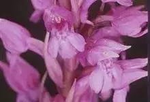 广布红门兰:植株高5-45厘米。块茎长圆形或圆球形,肉质,不裂。茎直立,圆柱状。叶片长圆状披针形、披针形或线状披针形至线形,上面无紫色斑点。花序具1-20余朵花,多偏向一侧;花紫红色或粉红色;花瓣直立,…全部>>