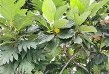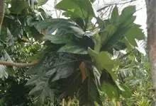 面包树 Fosberg)是桑科波罗蜜属植物。叶大,成熟之叶羽状分裂,表面深绿色,背面浅绿色;穗状花序单生叶腋,雄花序长圆筒形至长椭圆形或棒状;聚花果倒卵圆形或近球形;花期为3~5月,果期为7~10月。…全部>>