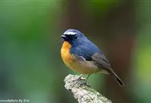 棕胸蓝姬鹟:属小型鸣禽,体长10-13厘米,体重6-10克,是一种体型很小的灰蓝及棕色鹟,雌雄羽色不同,雄鸟羽色艳丽,雌鸟羽色暗淡。雄鸟上体深蓝色,胸橙黄色,下腹灰白色。亚成鸟具褐色斑驳。…全部>>