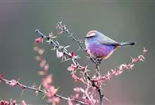花彩雀莺:体长9-12厘米,是一种毛茸茸偏紫色的雀莺。顶冠棕色,眉纹白。尾长,羽毛松软。前额有一宽阔的眉纹淡黄色,头顶栗色或棕红色,有的具紫蓝色光泽。背灰色,腰和尾上覆羽辉紫蓝色,飞羽灰褐色。…全部>>