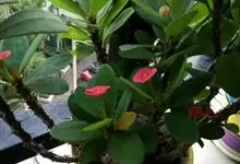 铁海棠为大戟科大戟属蔓生灌木植物;茎多分枝,具纵棱,呈旋转状;叶互生,通常集中于嫩枝上;每个花序基部边缘具微小的红色尖头;苞叶先端圆且具小尖头,无柄,上面鲜红色,下面淡红色;苞片丝状;子房光滑无毛,…全部>>