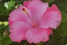 朱槿,锦葵科木槿属的常绿灌木,叶子呈阔卵形或狭卵形,边缘具粗齿;花生于上部叶腋间,常下垂,花冠呈漏斗形且为玫瑰红色或淡红、淡黄等色,花瓣呈倒卵形,先端圆;蒴果为卵形,平滑无毛且有喙;花期全年。它的名称,…全部>>