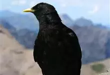 黄嘴山鸦是鸦科、山鸦属鸟类,体长38-42厘米。体形较细弱,黄色的嘴细而下弯,嘴亦较短。雌雄羽色相似。全身羽毛黑色沾褐具绿色金属光泽,尤以两翅和尾较明显。幼鸟腿灰色,嘴上黄色较少。…全部>>
