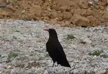 红嘴山鸦,是脊索动物门鸟纲雀形目鸦科鸟类。红嘴山鸦的成鸟通体羽毛纯黑色具有蓝色金属光泽,翼和尾泛有蓝绿色金属光泽;虹膜暗褐色,喙较为尖细,并且呈镰状下弯,喙和脚朱红色。…全部>>