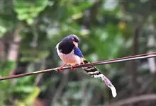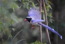 红嘴蓝鹊,别名山鹊、长尾鹊,是鸦科蓝鹊属的一种观赏性较强的大型鸣禽。该物种为体长54~65cm,头、颈、喉和胸黑色,头顶至后颈有一块白色至淡蓝白色或紫灰色块斑,其余上体紫蓝灰色或淡蓝灰褐色。尾长呈凸状,…全部>>