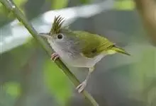 白腹凤鹛是绿鹃科、绿凤鹛属的小型鸟类,体长10-12厘米。上体从头到尾黄绿色,有短的羽冠,头顶微具黑色羽轴纹;眼先、眼周,耳羽和下体灰白色,尾下覆羽黄色。虹膜褐色或红褐色,上嘴浅褐色或肉褐色,…全部>>