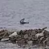 灰背鸥大型水鸟,体长62~69厘米。嘴直,黄色,下嘴先端有红色斑。脚粉红色,头、颈和下体白色,背、肩和翅黑灰色,腰,尾上覆羽和尾白色。冬季头和上胸有褐色纵纹,特别是眼周和后枕较密。飞翔时翅前后缘白色…全部>>