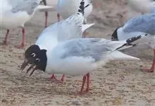 遗鸥鸥科鸥属濒危候鸟,中型水禽,体长为40厘米左右。成鸟夏羽:整个头部深棕褐色至黑色,上沿达后颈,下沿至下喉及前颈,深棕褐色由前向后逐渐过渡成纯黑色,与白色颈部相衔接。眼的上、下方及后缘具有显著的白斑,…全部>>