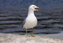 灰翅鸥,夏羽头、颈、腰、尾白色;肩、背和翅上覆羽鸽灰色。冬羽和夏羽相似,但头和颈具淡褐色纵纹,有时扩展至上胸。嘴黄色,下嘴先端具红斑;幼鸟嘴黑色。脚粉红色。栖息于海岸:悬岩,海滨沙滩于近海海岛上。常…全部>>