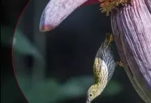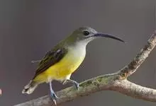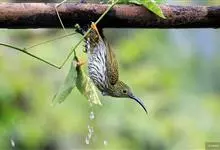 纹背捕蛛鸟:为太阳鸟科捕蛛鸟属的鸟类。是太阳鸟科中体型较大的一种,体重25-45克,体长160-210毫米。嘴粗长而尖且向下弯曲。上体橄榄黄色具黑色中央斑纹。下体淡黄白色满布黑色纵纹,尾具黑色次端斑。…全部>>
