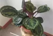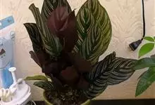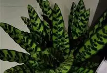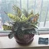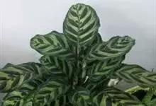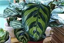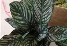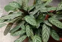 孔雀竹芋:竹芋科,肖竹芋属多年生常绿草本植物。植株挺拔株高可达60厘米。叶柄紫红色, 叶片薄革质,卵状椭圆形,叶面上有墨绿与白色或淡黄相间的羽状斑纹,就像孔雀尾羽毛上的图案,因而得名。…全部>>