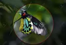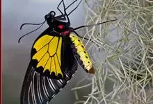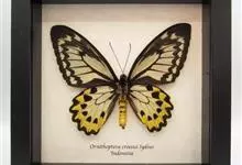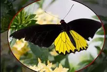 金裳凤蝶是凤蝶科、裳凤蝶属的动物。金裳凤蝶身体呈黑色,头、颈和胸侧有红毛,腹部有黑黄两色相间条纹,雄蝶前翅黑色,具黑天鹅绒光泽,各脉两侧灰白色,后翅金黄色,各室外缘有等腰三角形黑斑1枚,斑内侧有晕,…全部>>
