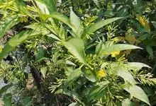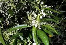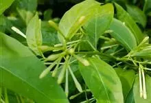 夜香树是茄科、夜香树属直立或近攀援状灌木。枝条细长而下垂。叶有短柄,叶片矩圆状卵形或矩圆状披针形,全缘,顶端渐尖,基部近圆形或宽楔形,两面秃净而发亮,有6-7对侧脉。伞房式聚伞花序,腋生或顶生,…全部>>