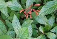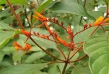 郎德木是茜草科,郎德木属灌木,高可达2米;叶对生,革质,叶片卵形、椭圆形或长圆形,边缘背卷,叶两面常皱,托叶三角形,有柔毛,聚伞花序顶生,有花数朵至多朵,花有花梗;萼管近球形,裂片线形,花冠鲜红色,…全部>>