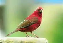 酒红朱雀小型鸟类,体长13~15厘米。雄鸟通体深红色,头部深朱红或棕红色,下背和腰玫瑰红色,眉纹粉红色而具丝绢光泽。两翅和尾黑褐或灰褐色、具暗红色狭缘,内侧两枚三级飞羽具淡粉红色先端。…全部>>