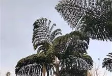 狐尾椰是棕榈科狐尾椰属的常绿乔木;木植高大通直,茎干单生,茎部光滑,有叶痕,略似酒瓶状;叶色亮绿族生茎顶,羽状全裂,小叶披针形,轮生于叶轴上,形似狐尾;穗状花序,分枝较多;雌雄同株;果卵形,…全部>>