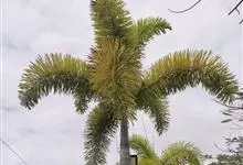 狐尾椰是棕榈科狐尾椰属的常绿乔木;木植高大通直,茎干单生,茎部光滑,有叶痕,略似酒瓶状;叶色亮绿族生茎顶,羽状全裂,小叶披针形,轮生于叶轴上,形似狐尾;穗状花序,分枝较多;雌雄同株;果卵形,…全部>>