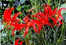 山丹是百合科百合属的多年生草本植物。鳞茎卵形或圆锥形,鳞片长圆形或长卵形,白色;叶散生茎中部,线形,边缘有乳头状突起;花单生或数朵成总状花序,花鲜红色,常无斑点,花被片反卷,…全部>>