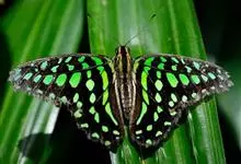 青带凤蝶Graphium sarpedon ,又名青凤蝶,是最普遍的中型凤蝶,飞行速度很快。青带凤蝶的翅膀中央有许多浅蓝色的斑点,很整齐地排列成一条直线。这些斑点由上而下逐渐变大,就像一条青色的带子。全部>>