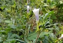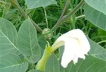 曼陀罗,茄科曼陀罗属一年生大型草本植物,全株光滑。有臭气;叶呈广卯形,边缘具不规则波状浅齿裂;花单生于枝杖间或叶腋,直立,有短梗;花萼是筒状裂片三角形,颜色为白色或淡紫色;果实为蒴果卵状,…全部>>