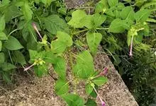 即紫茉莉,英文名:Four-o'clock,Marvel of Peru,为紫茉莉科、紫茉莉属多年生草本植物,一年生栽培。株高50~80cm。根粗壮,茎多分枝而散生。叶对生,卵形或心脏形。花数朵簇生…全部>>