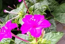 即紫茉莉,英文名:Four-o'clock,Marvel of Peru,为紫茉莉科、紫茉莉属多年生草本植物,一年生栽培。株高50~80cm。根粗壮,茎多分枝而散生。叶对生,卵形或心脏形。花数朵簇生…全部>>