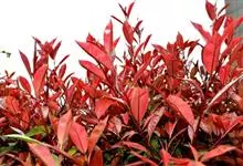 红叶石楠 是蔷薇科,石楠属杂交种,为常绿小乔木或灌木,乔木高可达5米、灌木高可达2米。叶片革质,长圆形至倒卵状、披针形,叶端渐尖,叶基楔形,叶缘有带腺的锯齿,花多而密,复伞房花序,花白色,梨果黄红色,…全部>>