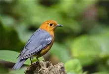 橙头地鸫是鸫科、地鸫属中型鸟类,体长18-22厘米。整个头、颈和下体橙栗色,其余上体包括两翅和尾蓝灰色或橄榄灰色,翅上多具白色翅斑。虹膜褐色或棕褐色,嘴黑褐色或黑色,脚橙黄色或肉黄色。特征极明显。…全部>>