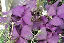多年生草本,地下块茎粗大。叶丛生,具长柄,掌状复叶,小叶 3枚,无柄,倒三角形,深紫色。紫叶酢浆草植株整齐,叶色紫红,紫红色叶片美丽诱人,粉红色花朵烂漫可爱。有些叶片上有黑色斑点分布,又称斑叶。全部>>