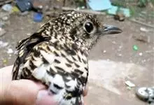 宝兴歌鸫,是鹟科、鸫属的鸟类。宝兴歌鸫为中型鸟类,体长20-24厘米。上体橄榄褐色,眉纹棕白色,耳羽淡皮黄色具黑色端斑,在耳区形成显著的黑色块斑。下体白色,密布圆形黑色斑点。宝兴歌鸫是中国的特有物种,…全部>>