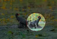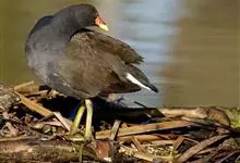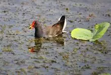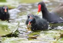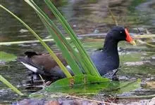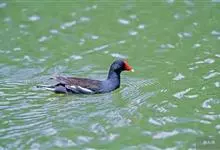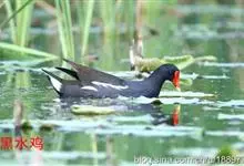 黑水鸡:是鹤形目、秧鸡科的鸟类,共有12个亚种。中型涉禽,体长24-35厘米。嘴长度适中,鼻孔狭长;头具额甲,后缘圆钝;嘴和额甲色彩鲜艳。翅圆形,第2枚初级飞羽最长,或第2枚和第3枚初级飞羽等长,…全部>>