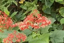 赪桐 Sweet)是唇形科、大青属灌木,高1-4米,叶片圆心形,顶端尖或渐尖,基部心形,边缘有疏短尖齿,表面疏生伏毛,二歧聚伞花序组成顶生,大而开展的圆锥花序,花序的最后侧枝呈总状花序,花萼红色,…全部>>