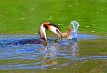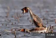 凤头鸊鷉:体长为50厘米以上,体重为0.5-1千克。前额和头顶部黑褐色,枕部两侧的羽毛往后延伸,分别形成束羽冠。脚的位置几乎处于身体末端,尾羽短而不显,趾侧有瓣蹼。瓣蹼十分发达,除了适于游水之外,…全部>>