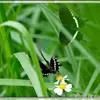 玉斑凤蝶Papilio helenus 别名白纹凤蝶,是凤蝶科凤蝶属美凤蝶亚属大型种类。雌雄同型;体翅皆黑色,后翅正面中室外有3个并列的白色斑,亚外缘有1列模糊的新月形红色斑,…全部>>
