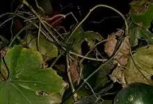 王瓜〔学名:Trichosanthes cucumeroides Maxim.〕:葫芦科,栝楼属多年生草质藤本植物。纸质叶片,轮廓阔卵形或圆形,叶基深心形,上面深绿色,背面淡绿色,细脉网状;叶柄纵条…全部>>