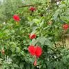 吊灯扶桑 Hook. f.)为锦葵科木槿属的常绿灌木。高达3米;小枝常下垂;叶椭圆形或长圆形,先端尖或短渐尖,基部楔形;花梗细,无毛或具纤毛,中部具节;蒴果长圆柱形;花期全年。因似灯笼高挂,…全部>>
