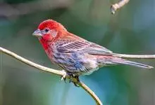 普通朱雀是雀形目雀科朱雀属鸟类,又名红朱雀、马料、青麻料。雄鸟上体红色,下体淡红色;头部、喉部、胸部及腰部亮红色;背部褐色染红色;两翼及尾黑褐色,羽缘染红色。雌鸟上体橄榄褐色,下体近白色,…全部>>