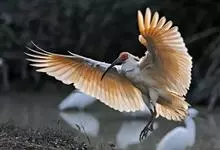 朱鹮是鹈形目鹮科朱鹮属的鸟类动物。其雄鸟通体白色,羽干及两翅与尾等均沾染粉红色;颈项上有很多长矛状羽毛,形成羽冠,耸立时非常夺目;嘴长而向下曲,呈黑色,先端朱红,脚的裸露部分亦呈亮红色。雌鸟羽色略同,…全部>>