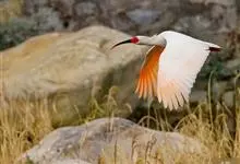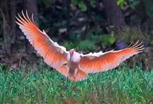 朱鹮是鹈形目鹮科朱鹮属的鸟类动物。其雄鸟通体白色,羽干及两翅与尾等均沾染粉红色;颈项上有很多长矛状羽毛,形成羽冠,耸立时非常夺目;嘴长而向下曲,呈黑色,先端朱红,脚的裸露部分亦呈亮红色。雌鸟羽色略同,…全部>>