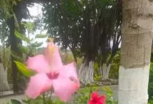 朱槿,锦葵科木槿属的常绿灌木,叶子呈阔卵形或狭卵形,边缘具粗齿;花生于上部叶腋间,常下垂,花冠呈漏斗形且为玫瑰红色或淡红、淡黄等色,花瓣呈倒卵形,先端圆;蒴果为卵形,平滑无毛且有喙;花期全年。它的名称,…全部>>