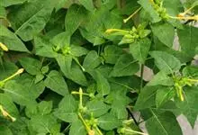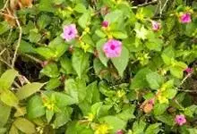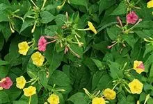 即紫茉莉,英文名:Four-o'clock,Marvel of Peru,为紫茉莉科、紫茉莉属多年生草本植物,一年生栽培。株高50~80cm。根粗壮,茎多分枝而散生。叶对生,卵形或心脏形。花数朵簇生…全部>>