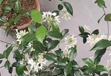 络石 Lem.),夹竹桃科络石属常绿木质藤本植物,又名万字茉莉、络石藤、风车藤、花叶络石等。株长达10米,具乳汁;茎赤褐色,圆柱形,有皮孔;小枝被短柔毛,老时无毛;叶革质或近革质,…全部>>