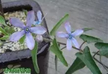 天蓝尖瓣藤 Decne.)又名琉璃唐锦,是夹竹桃科马利筋亚科尖瓣藤属的多年生植物,株高30-80厘米,全株密被白色茸毛。叶对生,披针长心形,基部心形。花顶生或腋生,花瓣5,淡蓝色。…全部>>