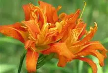 重瓣萱草 L. var. kwanso Regel),百合科萱草属植物。根近肉质,中下部有纺锤状膨大;花桔黄色,花被裂片多数,雌雄蕊发育不全。花被管较粗短,长2-3厘米;内花被裂片宽2-3厘米。…全部>>