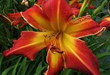 萱草 L.)是阿福花科、萱草属植物。根近肉质,中下部有纺锤状膨大;叶一般较宽;花早上开晚上凋谢,无香味,桔红色至桔黄色,内花被裂片下部一般有“∧”形采斑。这些特征可以区别于中国产的其他种类。…全部>>
