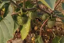 曼陀罗,茄科曼陀罗属一年生大型草本植物,全株光滑。有臭气;叶呈广卯形,边缘具不规则波状浅齿裂;花单生于枝杖间或叶腋,直立,有短梗;花萼是筒状裂片三角形,颜色为白色或淡紫色;果实为蒴果卵状,…全部>>
