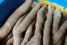 薯蓣是缠绕草质藤本。块茎为长圆柱形,垂直生长,长可达1米多,断面干时白色。茎通常带紫红色,右旋,无毛。单叶,在茎下部的互生,顶端渐尖,基部深心形、宽心形或近截形,边缘常3浅裂至3深裂。叶腋内常有珠芽。…全部>>