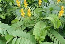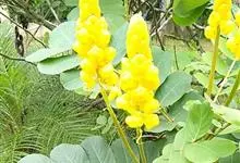 翅荚决明 Roxb.)是豆科决明属灌木植物,高3米。羽状复叶,在叶柄和叶轴上有窄翅;小叶倒卵状长圆形,先端圆钝,基部斜截形;总状花序顶生和腋生;荚果带形,…全部>>