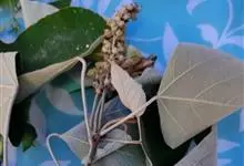白背叶Müll.Arg.)是大戟科、野桐属的小乔木或灌木。叶互生,卵形或宽卵形,先端骤尖或渐尖,下面被灰白色星状绒毛;穗状花序或雄花序有时为圆锥状,卵形或三角形;蒴果近球形,…全部>>